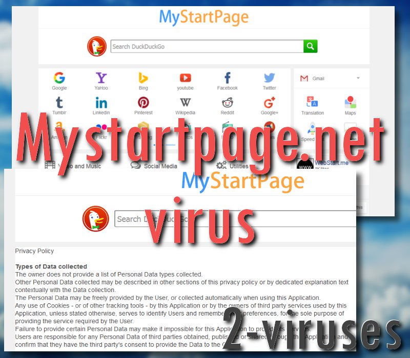 Mystartpage.net virus er en browser hijacker, der er fuldstændig identisk med infektionen Newtab.pro, som vi omtalte i sidste uge. Selskabet RCPSoft har været ansvarlig for nogle af de skadelige programmer, vi allerede har diskuteret. NetGroove browser er for eksempel et produkt fra RCPSoft, og selskabet er sikkert også i stand til at frembringe en browser hijacker. Derfor skal du være meget forsigtig med ikke at installere nogen applikationer, som dette selskab tilbyder. Mystartpage.net virus benytter søgemaskinen DuckDuckGo, når den skal frembringe søgeresultater, men vi har disse resultater mistænkt for at være fyldte med sponsorerede resultater og bedrageriske links, der nok leder hen til ondsindede eller skadelige hjemmesider.