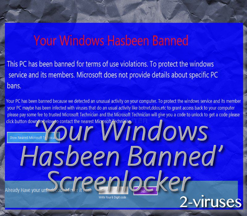 ’Your Windows Has been Banned’, som også kaldes ‘Your Windows Has Been Banned’, er en relativ ny skærmlåser, der dukkede op i november 2016 (den første version). ’Your Windows Hasbeen Banned’ er faktisk den første version af skærmlåseren, mens ’Your Windows Has Been Banned’ er den anden version (som dukkede op d. 13. december 2016). De er stort set identiske, version nummer to har blot fået rettet skrivefejlen i overskriften, og den omfatter de konkrete kontaktoplysninger vedrørende support. Det er en slags trojansk hest, for brugeren med den inficerede computer modtager falske oplysninger om, at der er blevet registreret ’usædvanlig aktivitet’ på enheden, og at han eller hun derfor bør kontakte den nærmeste Microsoft-tekniker for at løse sikkerhedsproblemet. Men det er i virkeligheden såkaldt teknisk-support-svindel af den slags, der låser skærmen.